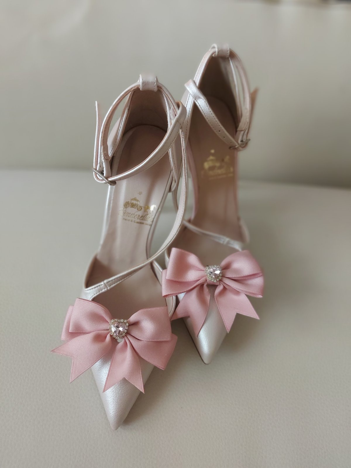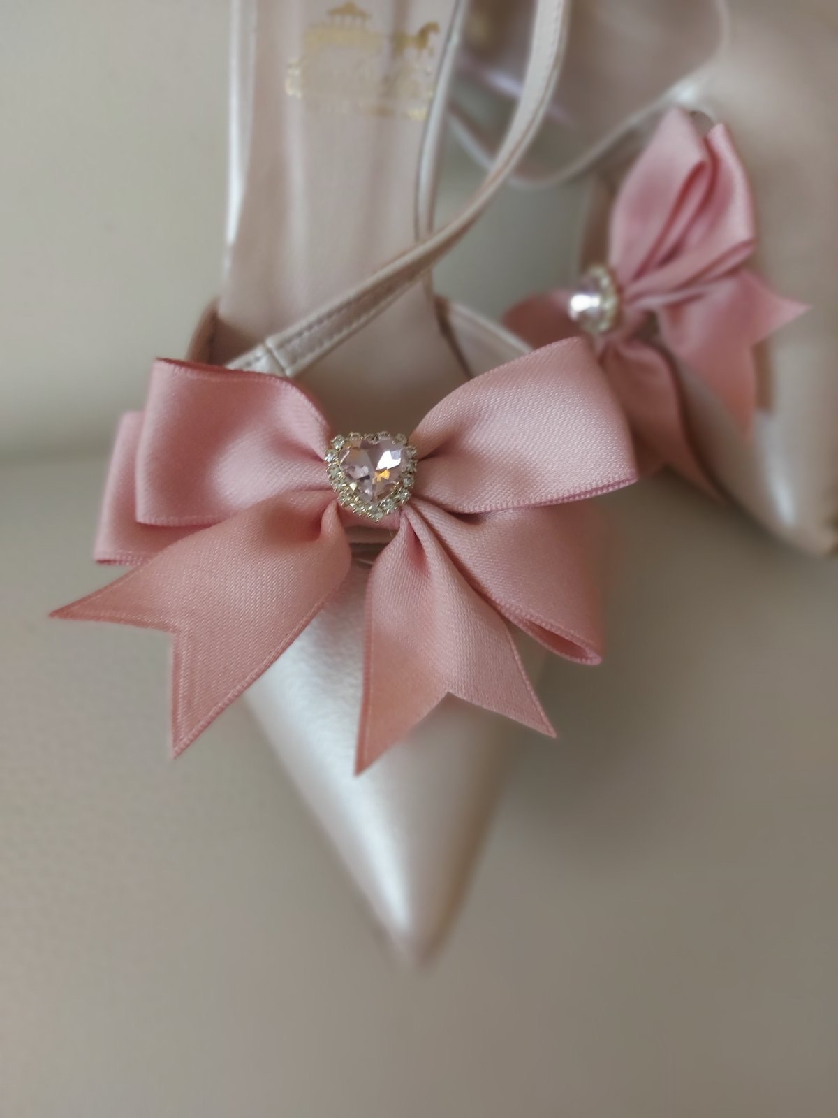 Παραμυθένιο νυφικό γοβάκι με υπέροχους ροζ φιόγκους και πετράδια καρδιές!